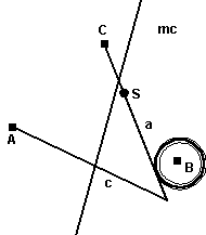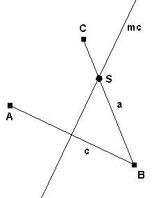 Man sieht z.B. dass der Schnittpunkt S direkt von mc und a abhängt, indirekt aber auch von allen drei Punkten A, B und C. Daraus folgt: ändert auch nur einer dieser drei Punkte seine Lage, dann wird auch S seine Lage ändern müssen. Andererseits ist zu erkennen, dass mc nicht neu gezeichnet werden muß, wenn C seine Lage verändert.