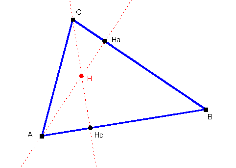 Als einfaches Beispiel soll hier die Aufzeichnung eines Makros "Konstruktion des Höhenschnittpunktes eines Dreiecks" betrachtet werden. Die Lage des Höhenschnittpunktes H ist durch die Positionen der drei Eckpunkte A, B und C des Dreiecks eindeutig festgelegt. Diese drei Punkte sind also die Startobjekte; der Höhenschnittpunkt ist das Zielobjekt.